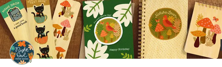 Night Owl Paper Goods is run by two sisters who adore cute critters, silly puns and ample amounts of espresso. Jennifer is a true night owl designing products into the wee hours, while Megan runs the show.