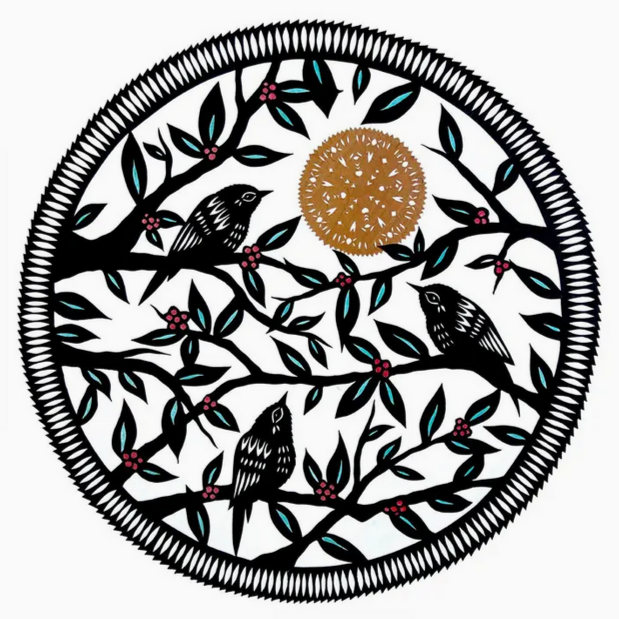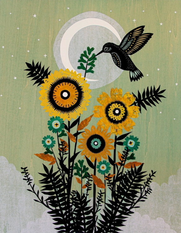 Signed and titled printed reproduction of an original hand cut paper collage by Angie Pickman. Print measures 8 x 8 inches including white border (image is approximately 7 x 7 inches). Printed with archival Epson pigment inks on acid free cotton rag 260 gsm Epson Velvet Fine Art Paper. Packaged in an acid free plastic sleeve with cardboard backing.