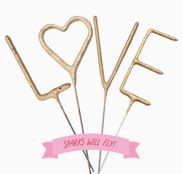 Mini 4″ Gold “LOVE” Sparkler Wand Card – “Sparks Will Fly”